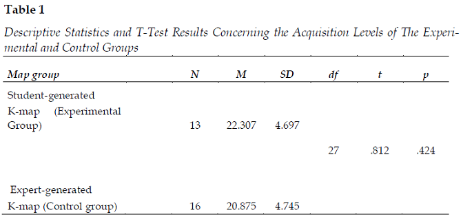 The Effects of Using Student-Generated and Expert-Generated Knowledge Maps on Acquisition and Recall